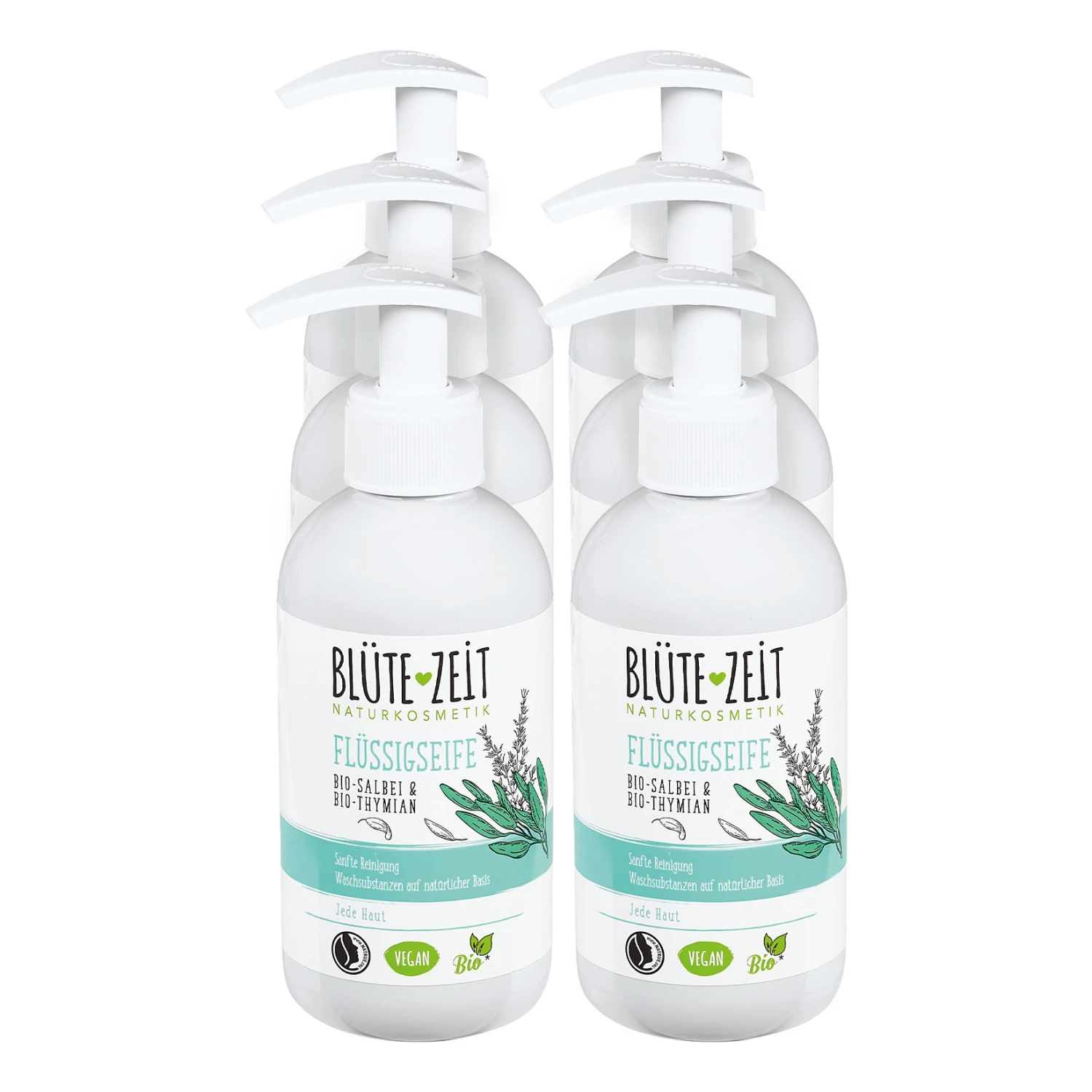 Die BLÜTE-ZEIT Flüssigseife mit Bio-Salbei und Bio-Thymian ist besonders für die schonende Reinigung der Hände geeignet. Waschsubstanzen auf natürlicher Basis reinigen die Hände besonders sanft – für rundum saubere Hände.